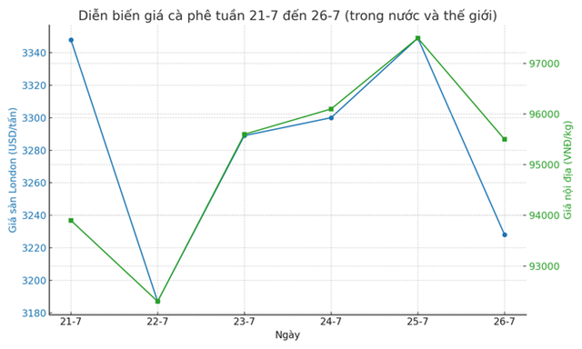 Trong khi đó, giá Robusta thế giới chốt tuần ở mức 3.228 USD/tấn (tương đương 83.700 đồng/kg), giảm 120 USD/tấn, tương đương 3,6% cho kỳ hạn giao tháng 9-2025. Như vậy, giá cà phê trong nước hiện cao hơn giá trên sàn London khoảng 12.000 đồng/kg.