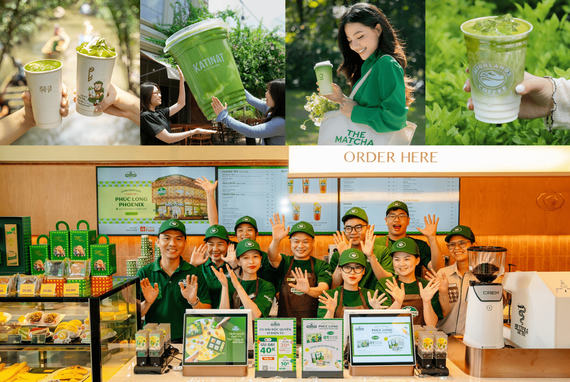Một xu hướng thú vị là các thương hiệu không chỉ cạnh tranh mà còn đồng loạt chạy theo các “cơn sốt” chung để thu hút khách hàng. Dữ liệu từ YouNet Media cho thấy, matcha trở thành hiện tượng khi mức tiêu thụ nửa đầu năm 2025 tăng hơn 1,000% so với cùng kỳ năm trước, khi tất cả chuỗi cùng gia nhập “cuộc chiến” matcha. Bên cạnh đó, sản phẩm theo mùa, phiên bản sự kiện hay chiến dịch bản địa hóa cũng được đồng loạt triển khai. Starbucks ra mắt bộ sưu tập ly sứ Việt Nam, Phúc Long xuất hiện trong lễ duyệt binh 30/4, Highlands phát triển mô hình drive-thru, Trung Nguyên Legend khai thác trải nghiệm “thiền cà phê”.