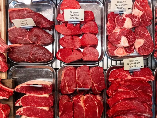 Thịt bò được trưng bày để bán tại một cửa hàng thịt ở Melbourne, Úc vào ngày 04/04 – Ảnh: Getty Images