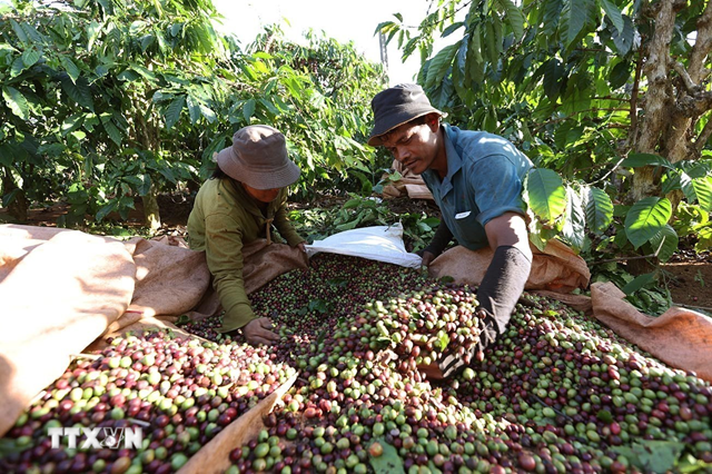 Thu hoạch càphê ở xã IAPhìn, tỉnh Gia Lai. (Ảnh: Vũ Sinh/TTXVN)
