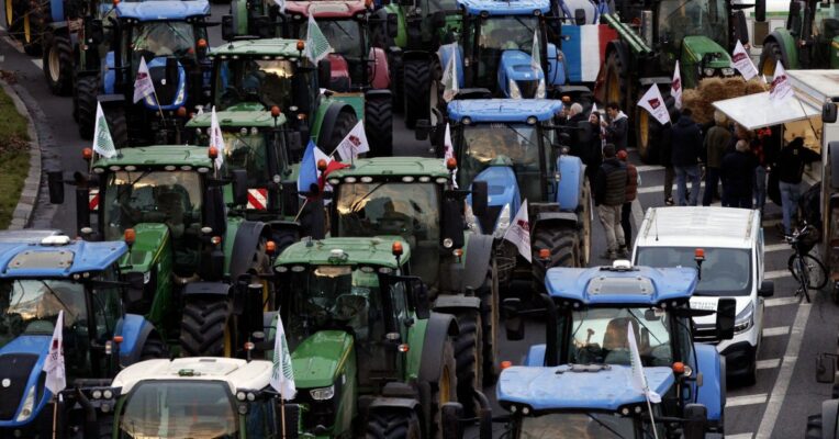 Nông Pháp đã lái hàng trăm máy kéo vào thủ đô Paris để biểu tình,...